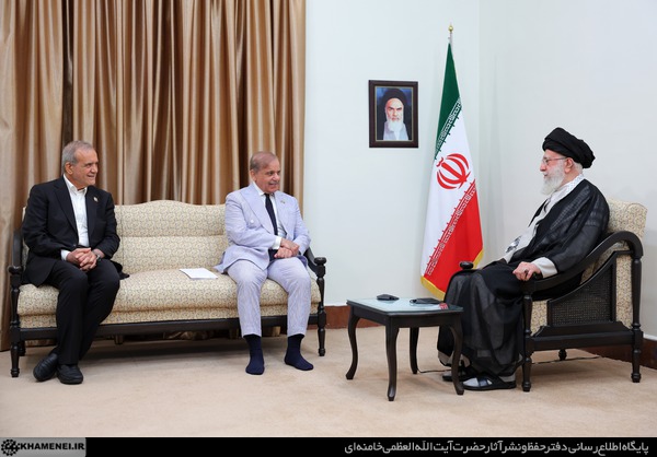 حضرت آیتالله خامنهای رهبر معظم انقلاب اسلامی در دیدار آقای «شهباز شریف»، نخست وزیر پاکستان و هیئت همراه، با اشاره به جایگاه ویژه پاکستان در مجموعه دنیای اسلام بر لزوم فعالیتهای مشترک و تأثیرگذار ایران و پاکستان برای متوقف کردن جنایات رژیم صهیونیستی در غزه تأکید کردند.
